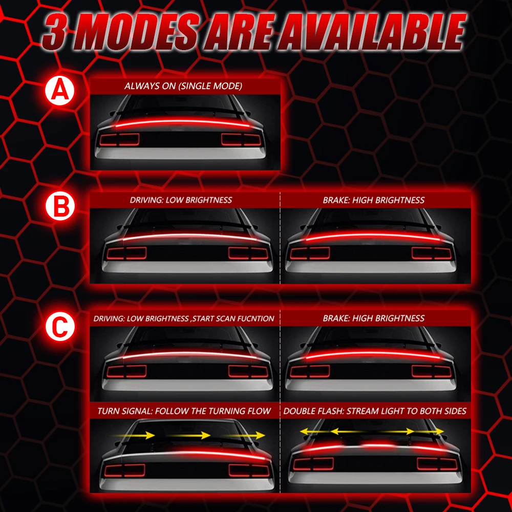 工作模式:启动流程,始终打开,左右转向,制动突出显示